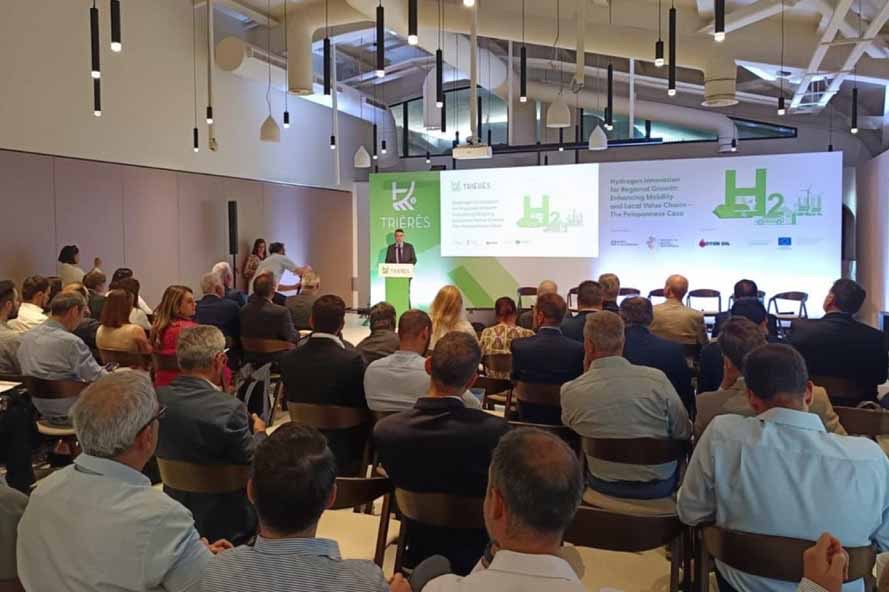 Ο κ. Δήμας αναφέρθηκε στη σημασία του έργου TRIĒRĒS, το οποίο αφορά στην κλιμάκωση των οικοσυστημάτων υδρογόνου σε όλη την Ευρώπη, ενώ περιέγραψε τα οφέλη που συνεπάγεται η λειτουργία της Κοιλάδας TRIĒRĒS στους Αγίους Θεοδώρους για τις θαλάσσιες μεταφορές και τη βιομηχανία, όπως επίσης και για τις οδικές μεταφορές.