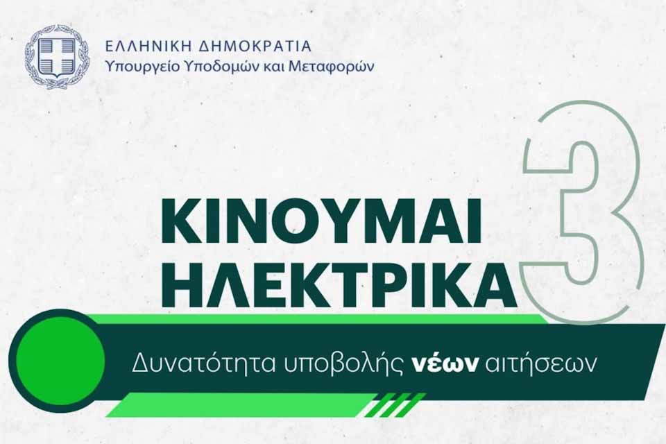 Η υποβολή νέων αιτήσεων θα είναι δυνατή στο πληροφοριακό σύστημα της δράσης https://kinoumeilektrika3.gov.gr/ αύριο, Πέμπτη 20 Φεβρουαρίου 2025.