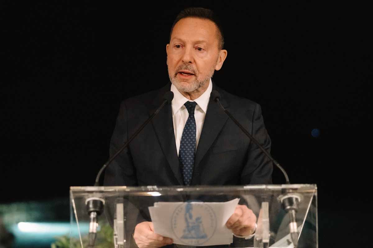Με χαρά σας καλωσορίζω απόψε στο επίσημο δείπνο που διοργανώνει η Τράπεζα της Ελλάδος σε αυτό το όμορφο σημείο, πολύ κοντά στο νησί της Σαλαμίνας, όπου το 480 π.Χ. οι αρχαίοι Έλληνες νίκησαν τους Πέρσες σε μία από τις πιο καθοριστικές ναυμαχίες της ιστορίας, η οποία, σύμφωνα με τους ιστορικούς, κατέστησε δυνατή, και καθόρισε σε μεγάλο βαθμό, την ανάπτυξη του δυτικού πολιτισμού όπως τον γνωρίζουμε σήμερα. Εδώ που βρισκόμαστε τώρα, με αυτή τη θέα, μπορούμε ίσως να εκτιμήσουμε ακόμα καλύτερα πόσο περιορίζει η σημερινή σύρραξη κάτι που εμείς οι Έλληνες πάντα θεωρούσαμε αυτονόητο: το δικαίωμα της ελευθεροπλοΐας.