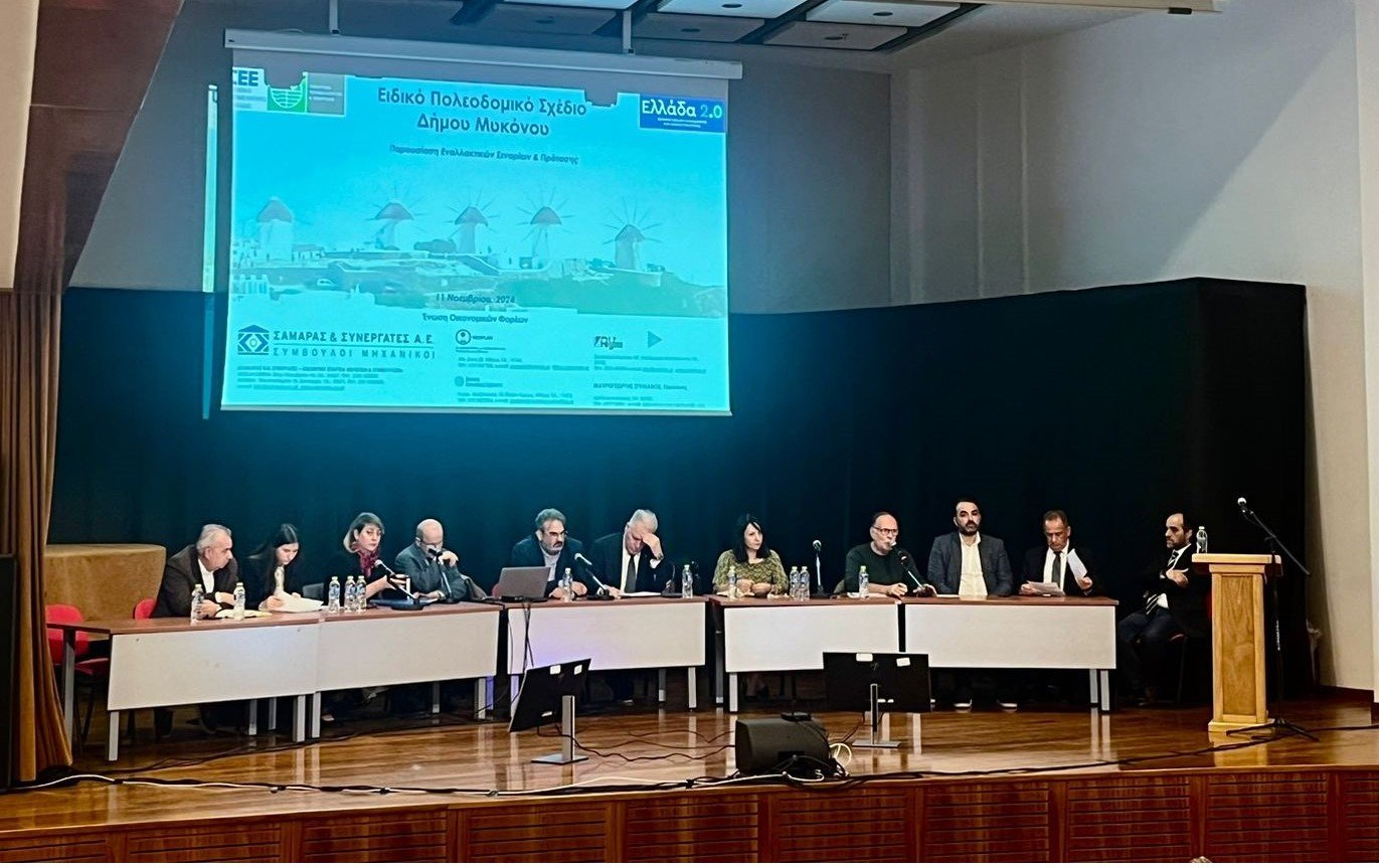 Το Υπουργείο Περιβάλλοντος και Ενέργειας, στο πλαίσιο υλοποίησης του εμβληματικού Προγράμματος Πολεοδομικών Μεταρρυθμίσεων «Κωνσταντίνος Δοξιάδης», που χρηματοδοτείται από το Ταμείο Ανάκαμψης και Ανθεκτικότητας, παρουσίασε σε συνεργασία με το Τεχνικό Επιμελητήριο Ελλάδος (ΤΕΕ), τον Δήμο Μυκόνου και τον Ανάδοχο της Μελέτης, τα εναλλακτικά σενάρια και το προκρινόμενο για το Ειδικό Πολεοδομικό Σχέδιο (ΕΠΣ) της Μυκόνου.