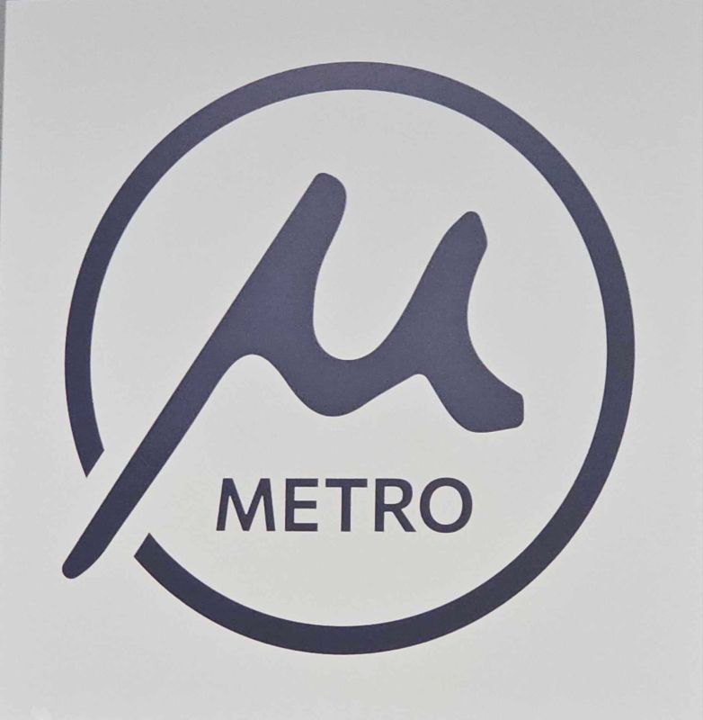 Το γράμμα «μ», εμπνευσμένο από την πεζή γραφή του σε εκκλησιαστικά κείμενα, μεταμορφώθηκε σε ένα σύγχρονο λογότυπο που χαρακτηρίζει το μετρό της πόλης και τη συνδέει με την παράδοσή της. Αυτό το σήμα φιλοδοξεί να αναγνωρίζεται διεθνώς ως η ταυτότητα της Θεσσαλονίκης.